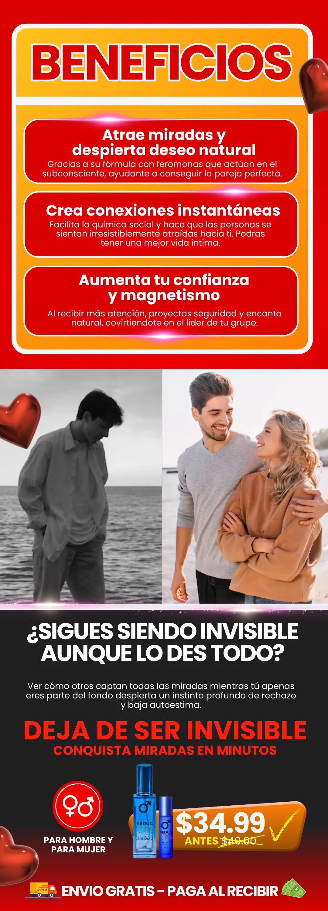 Copulina | Feromona femenina que aumenta la testosterona en hombres al olerla, disparando el deseo y el interés sexual. |